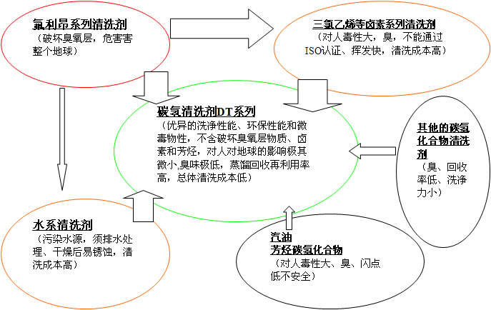 DT碳氫清洗劑與其他清洗劑的對比及聯(lián)系: