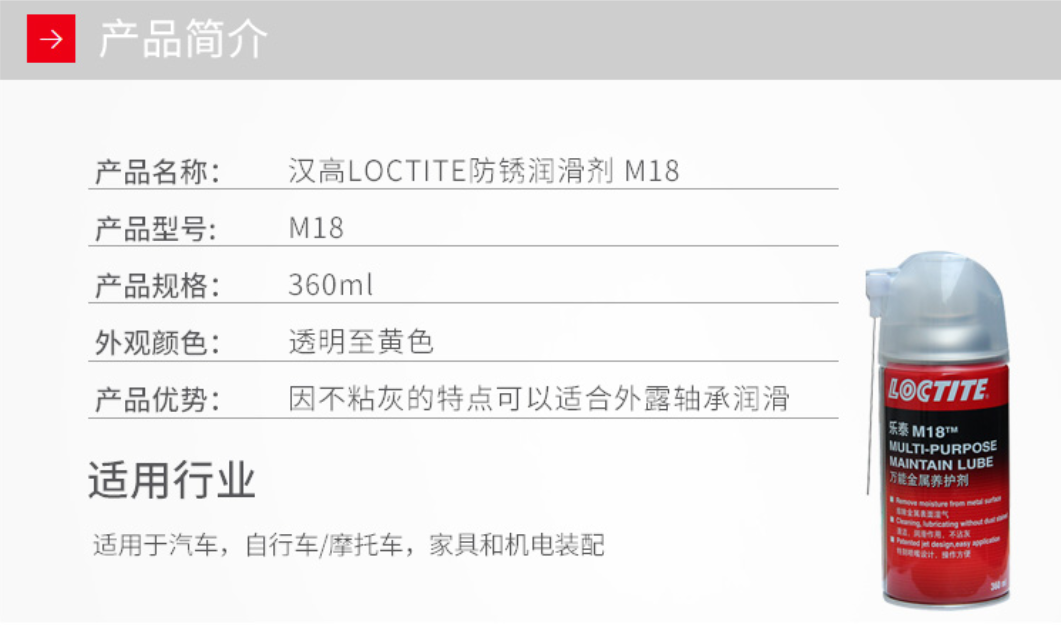 樂泰 M18 防銹潤(rùn)滑劑表面清洗劑萬能金屬養(yǎng)護(hù)劑 360ml 1罐裝